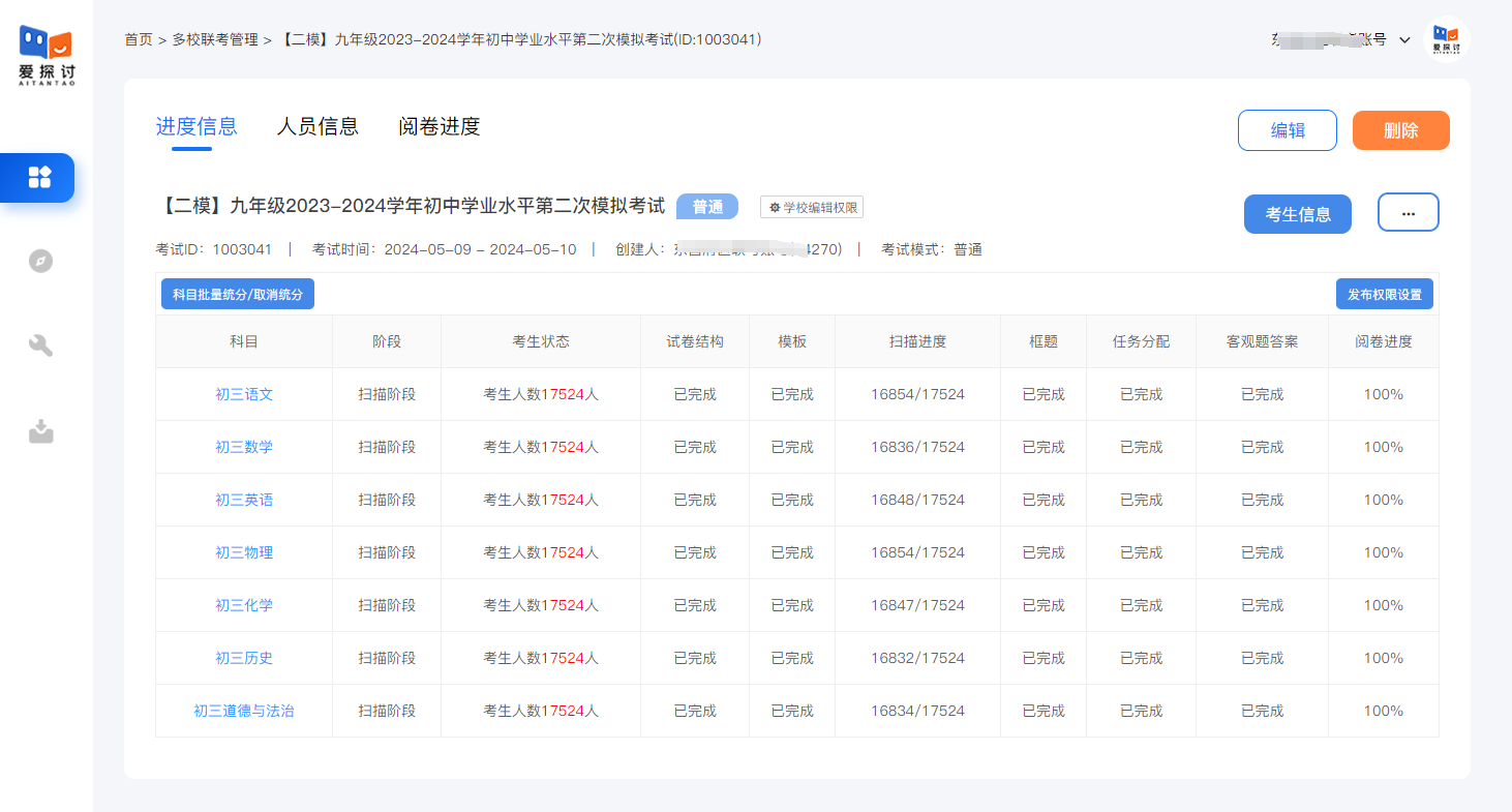 在考试结束后,爱探讨阅卷系统能够迅速生成详细的考试报告和数据分析结果。这些数据不仅包括了学生成绩、平均分、最高分、最低分等基本信息,还深入分析了学生的答题情况、知识点掌握情况等,为教师和学校提供了宝贵的教学参考和改进方向。