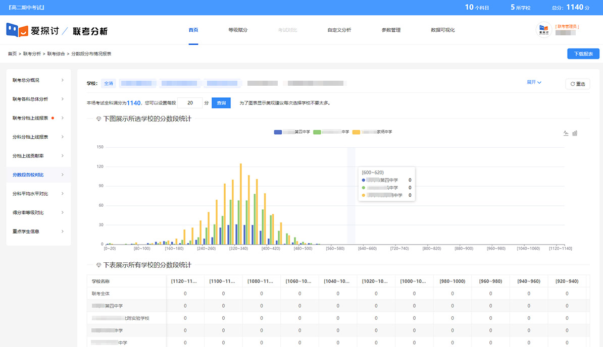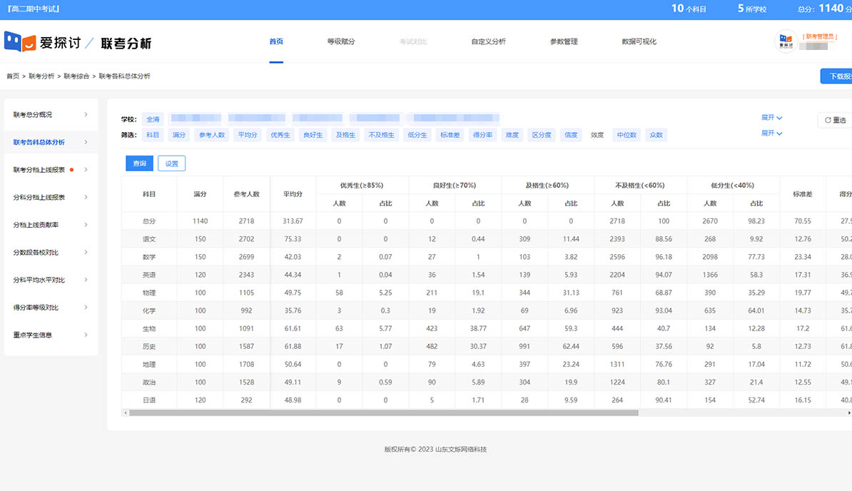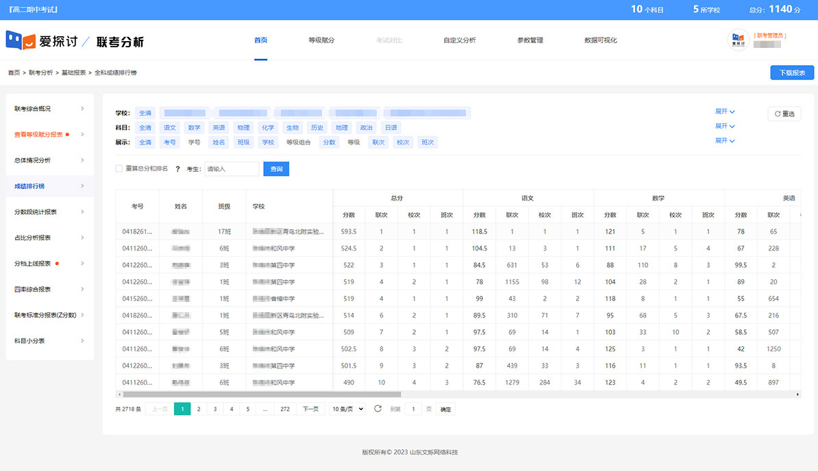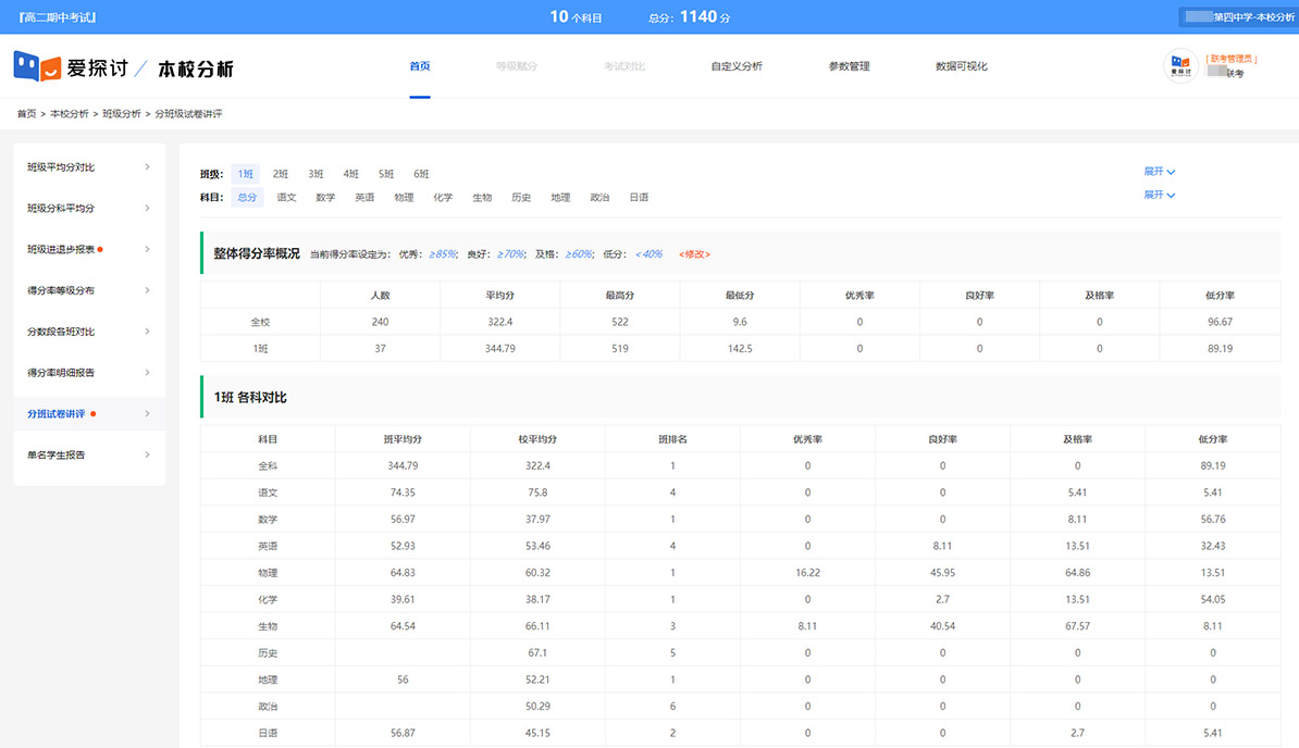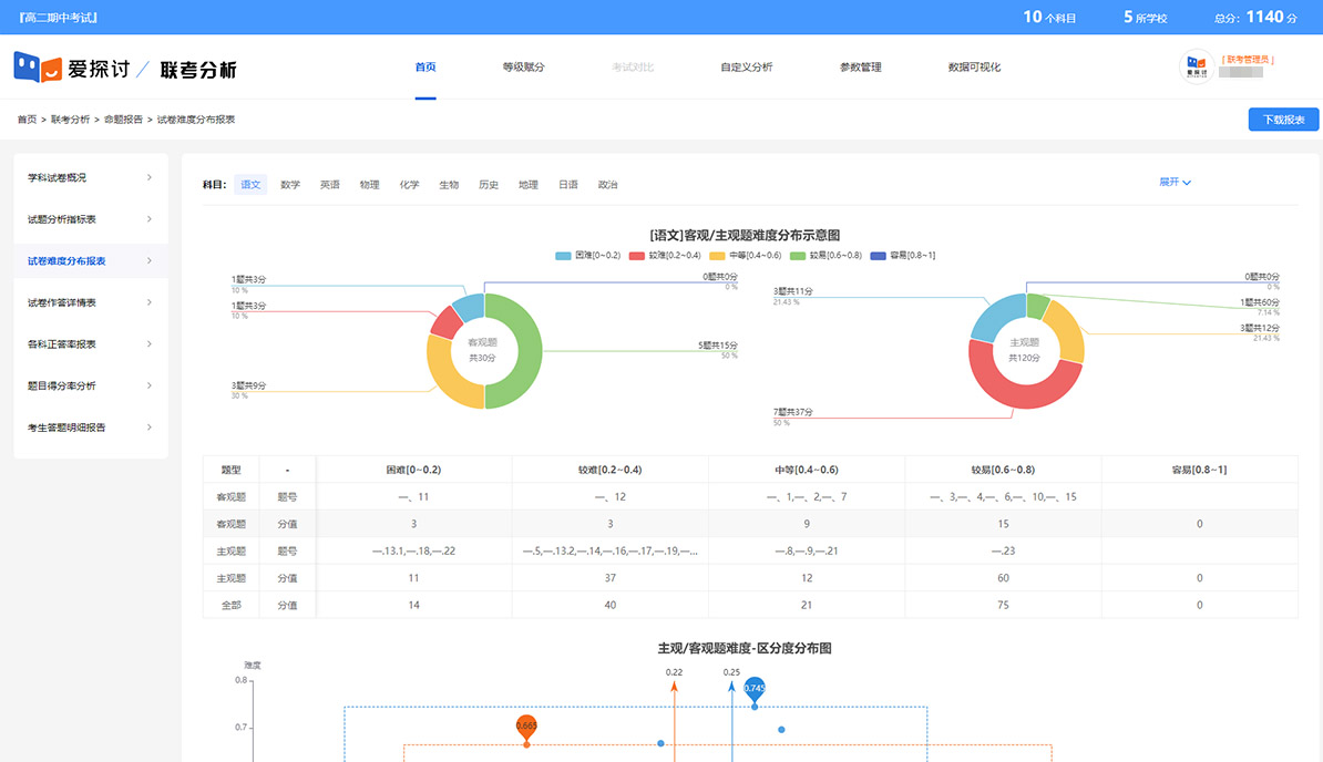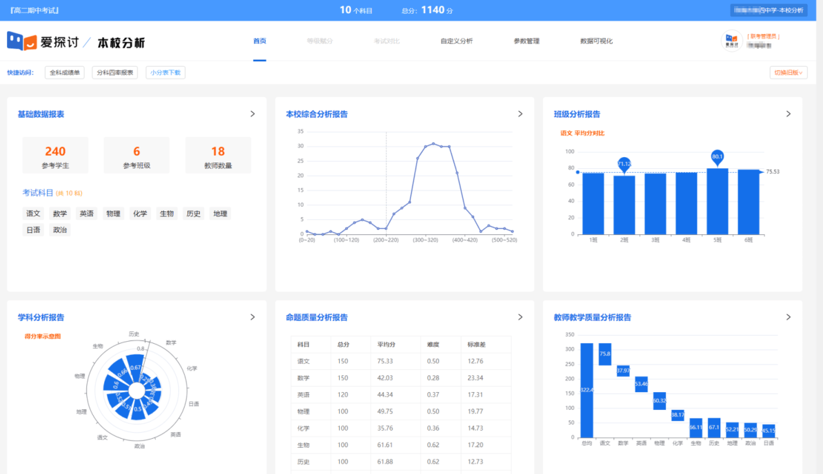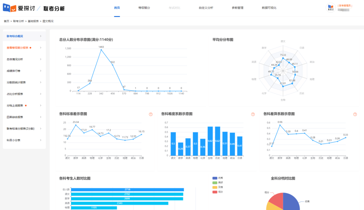 可视化图表呈现分析结果一目了然 , 一键生成考试成绩结果